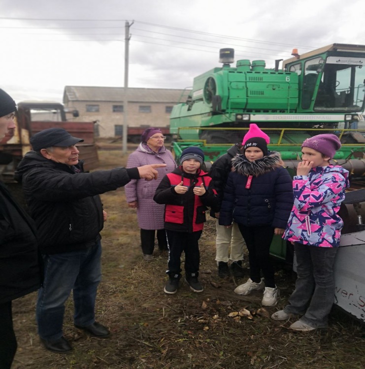 В рамках мероприятий «Семь шагов к профессии» ученики 5-7 классов под руководством учителей Боровой М.А. Ивановой Г.П. и Марсакова В.И. продолжили знакомство с профессиями сельскохозяйственного производства. В осенний погожий день они провели экскурсию на зерноток СПК «Хлебороб» и машинный двор. Дети познакомились с технологической цепочкой первичной подработки зерна, с машинами и механизмами, которые используются для этого, с местами и условиями хранения семян. С профессией сельского механизатора они продолжили знакомство на машинном дворе СПК. Дети осмотрели бороны, культиваторы для обработки почвы, сеялки для высева семян в почву, тракторы и зерноуборочные комбайны. Экскурсия дала много нового для кругозора и профориентации детей и оставила массу положительных эмоций. «Теперь нам стал понятнее путь зерна от поля до стола», — сказали они. Обучающиеся познакомились с профессиями сельского механизатора и агронома-полевода.